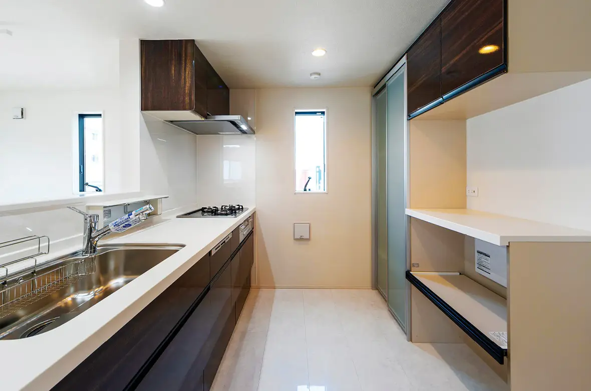 当初、中古戸建てを検討されていましたが、当社も融資の部分において助言・サポートさせていただき、融資額を伸ばすことができ、人気エリアで、商店街の活気を感じながらも、家族が集まる温かいリビングスペースのある理想のマイホームを実現されています。